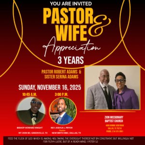 Zion’s Pastor and Wife 3rd Anniversary @ 3:00pm.