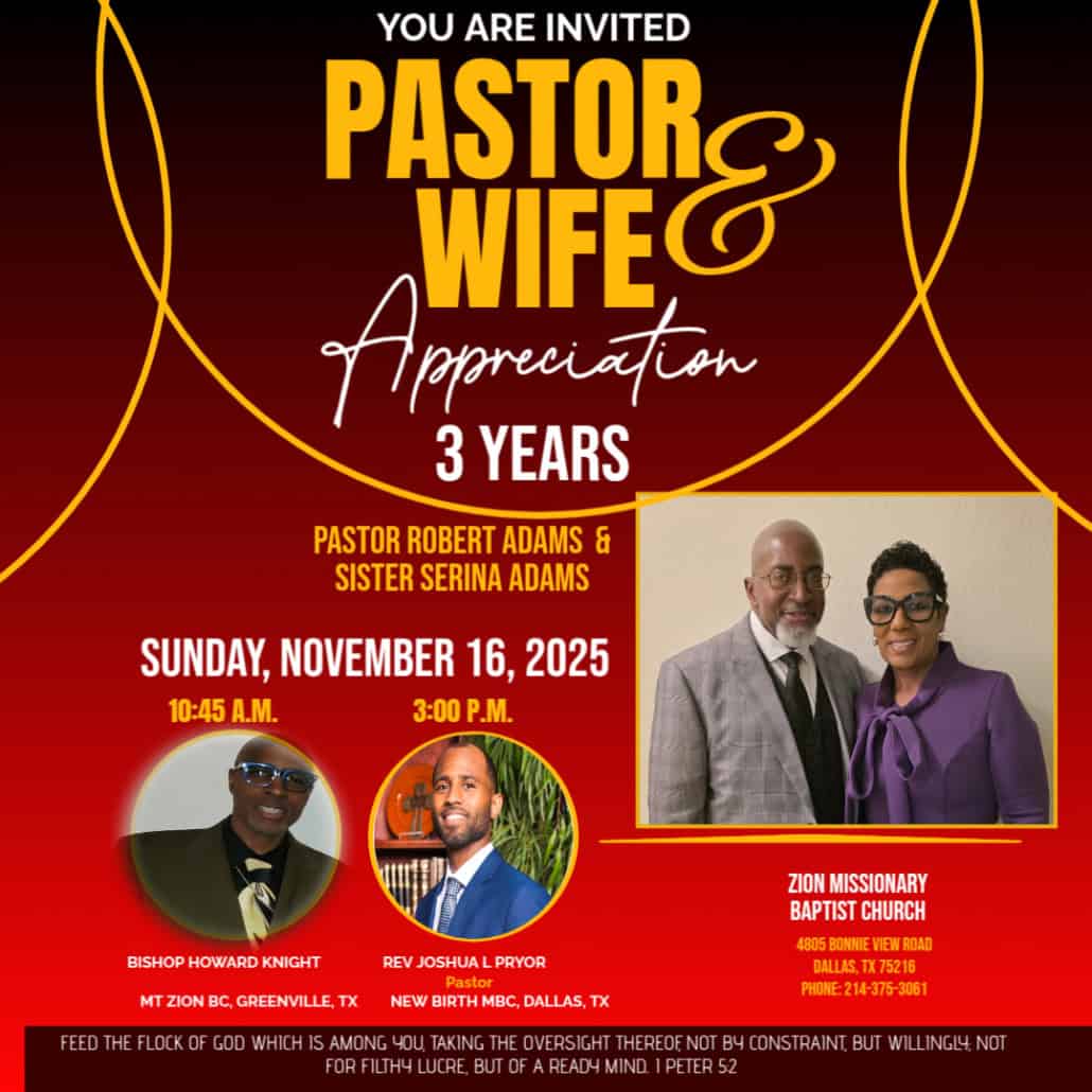 SUNDAY, NOVEMBER 16, 2025, YOU ARE INVITED TO JOIN US FOR MORNING SERVICE STARTING AT 10:45 AM WITH BISHOP HOWARD KNIGHT OF MOUNT ZION BAPTIST CHURCH AND EVENING SERVICE STARTING AT 3:00 PM WITH PASTOR JOSHUA PRYOR OF NEW BIRTH MISSIONARY BAPTIST CHURCH.